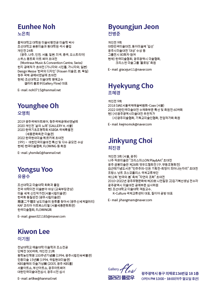 노은희 ㅣ 오영희 ㅣ 유용수 ㅣ 이기원 ㅣ 전병준 ㅣ 조혜경 ㅣ최진경